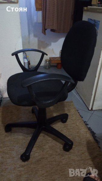 Продавам малко използван офис стол в отлично състояние. Въртящ се, с колелца, с механизъм за промяна височината на седалката и облегалката( амортисьор).