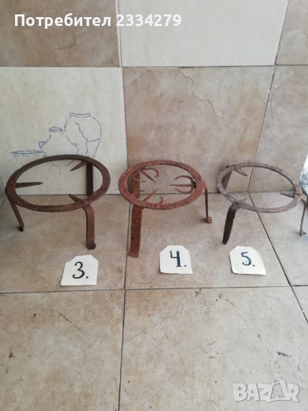 Стари пиростии ръчно изработени-ковани от различни майстори във различни времена ( от турско до 50-те). N:1 размер39см., цена 5€.; N:2 размер 30см. цена:11€; N:3 23см.,цена 9€., N:4 (НЕНАЛИЧНА) , N:5 широки 20см.,цена 8€.