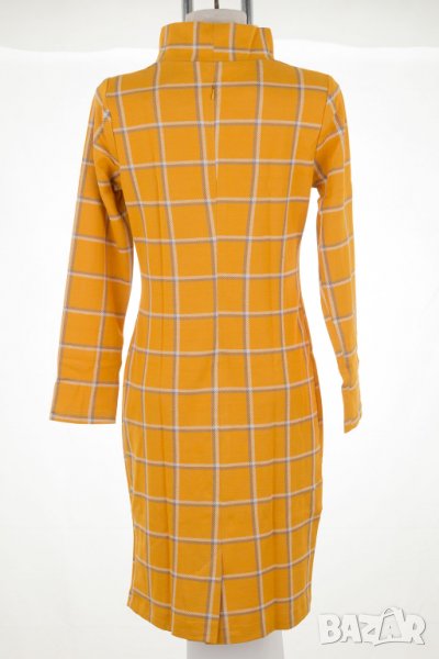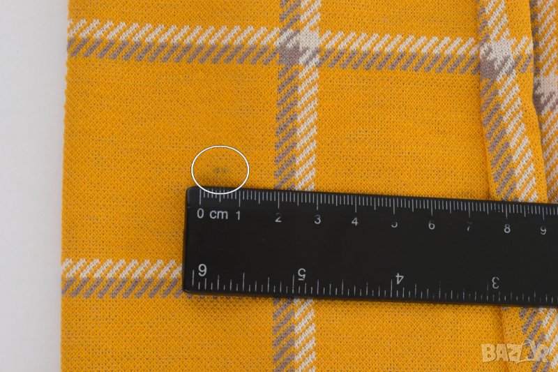 Забележка: на левия ръкав има една по тъмна нишка,която при носене на роклята не се забелязва заради принта на каре. Показвам на снимка.
