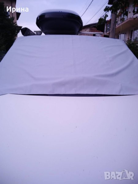 Покривало за предно и странични стъкла с две лица. Бяло за през лятото и тъмно сиво за през зимата. Предпазващо от слънце, дъжд, сняг, прах и др. Изработено е от хидрофобиран плат, който е здрав, плътен, водоустойчив и с UV защита. Закрепва се с джоб за вратите и велкро под огледалото. Размер 156/218/115. Торбичка за съхранение. Възможна изработка по дадени размери. Предлагаме и изработка на цяло покривало.