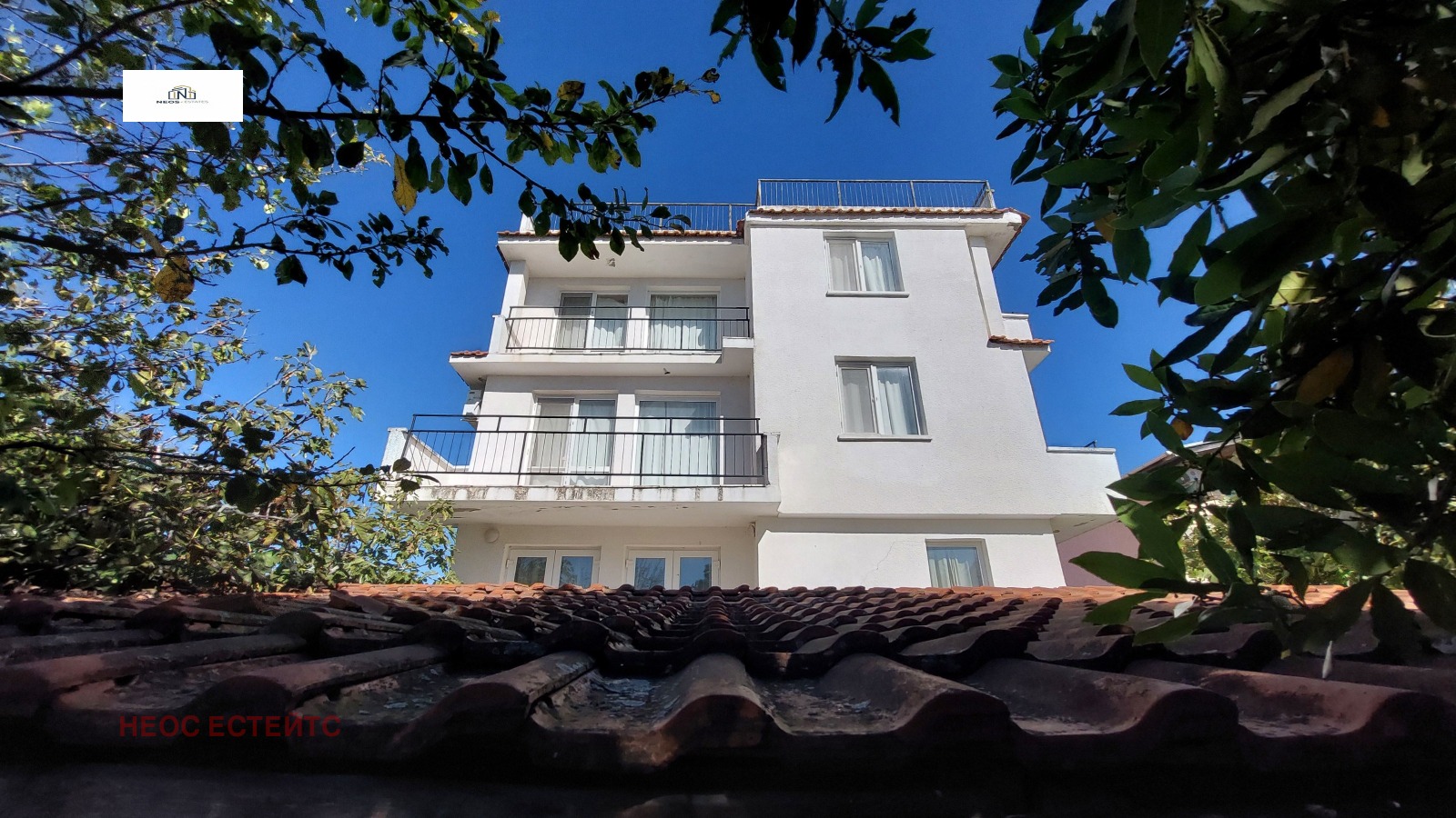 Четириетажна къща построена в поземлен имот от 438 кв.м. Къщата се намира във вилната зона на гр. Черноморец, на тихо и спокойно място, на 260 метра от морето и плажа. Застроената площ е 91 кв.м., масивна конструкция, PVC дограма със стъклопакет. Първият етаж се състои от коридор, просторна и светла всекидневна, отделна кухня, мокро помещение, баня/WC. От всекидневната се излиза на веранда. Вторият и третият етажи имат коридор, по три спални, всяка с тераса, по три бани/WC. На четвъртият етаж има спалня с тераса, баня/WC и голяма покривна тераса с морска панорама. Продава се с обзавеждането. В сутерена има две помещения, с площ около 40 кв.м., и голям навес 36 кв.м. Дворът е озеленен. Има цветя и овощни дръвчета. На терена са предвидени паркоместа за два автомобила.