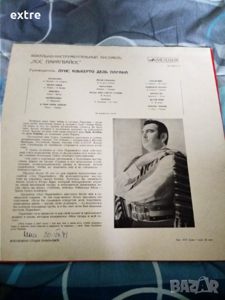 Мелодия 028627-8 Лос Парагвайос Руководитель Луис Альберто Дель Парана* – Лос Парагвайос, снимка 1 - Грамофонни плочи - 37778353 Мелодия 028627-8 Лос Парагвайос Руководитель Луис Альберто Дель Парана* – Лос Парагвайос, снимка 2 - Грамофонни плочи - 37778353 Мелодия 028627-8 Лос Парагвайос Руководитель Луис Альберто Дель Парана* – Лос Парагвайос, снимка 3 - Грамофонни плочи - 37778353 1/3
