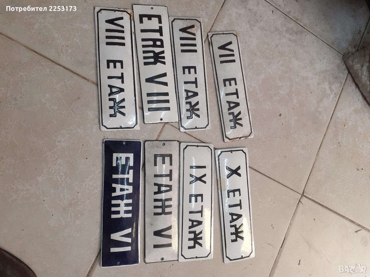 Заброй.Номерата 50лв(25,50евро) чифт,пушенето с ръжда 15евро,живота25евро,пожара18е, 35лева.Дебел матерял.Номера 15лв. матерял.м.н.к.ПредПоследна сн.60лв и размер50/25.Ал.плочка кцм 25 евро.с.к.ха.м.Стари номера за врата 12лв.м.Домоуправител18,5/6см са 11евро,м и тор,ДЗИ е 25 евро.м.Етажите са само 10 евро бр.м.ш.2.до.