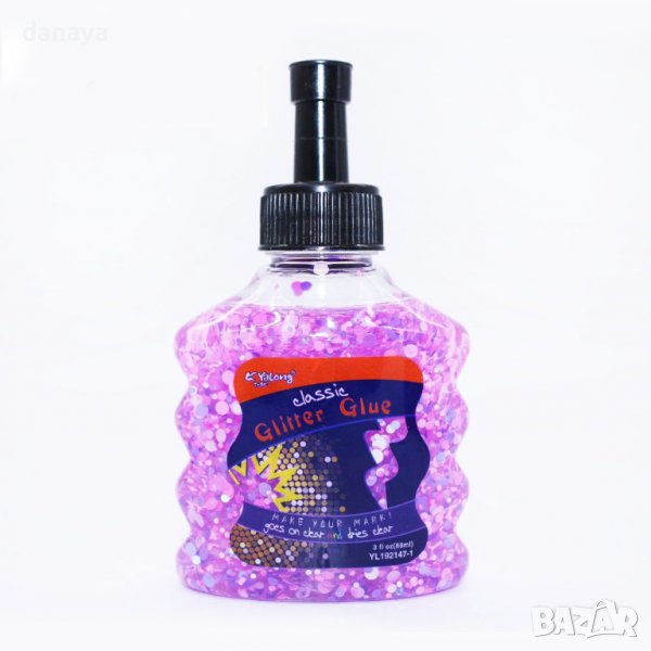 Брокатено лепило за арт произведения. Течно лепило с брокатени частици, идеално за предаване на блестящ празничен ефект към ръчно изработени картички, скрапбук албуми, декорации от хартия, дърво, пластмаса и др. Тубичките имат накрайник за прецизно нанасяне. Предлага се в различни цветове на брокатените частици. Изпращат се на случаен принцип.