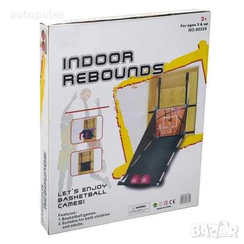 Игра за хвърляне в цел с баскетболен кош, за окачване на врата. Разполага с електронно табло за отчитане на резултати, на което може да се избира един от два режима на игра – 1. с отброяване на оставащо време за изстрел и отброяване на точки; 2. с отброяване на точки. Развива точността и двигателните способности на децата. Може да се играе самостоятелно или от двама и повече играчи. Комплектът съдържа две топки и помпа, чиято игличка се прибира във вътрешната част на буталото. Играта се сгъва и разгъва лесно и бързо, за да не заема място, когато не се използва. Размери табло – 50х40 см. Вътрешен диаметър ринг – 19 см. Диаметър топка – 12 см. Телескопична част за събиране на топките с размери – Ш50 х Д40 – 100 см. Размери кутия – 51х42х7 см. Тегло за комплект – 2.2 кг. Батерии – 3 х АА 1.5V (не са включени в комплекта). Материал – MDF, полиестер, PVC, метал. Сгъването на телескопичната част се извършва посредством натискане на копчета в двата края на долната къса страна и копчета в горната част на дългите страни. Подходяща за деца над 3 години