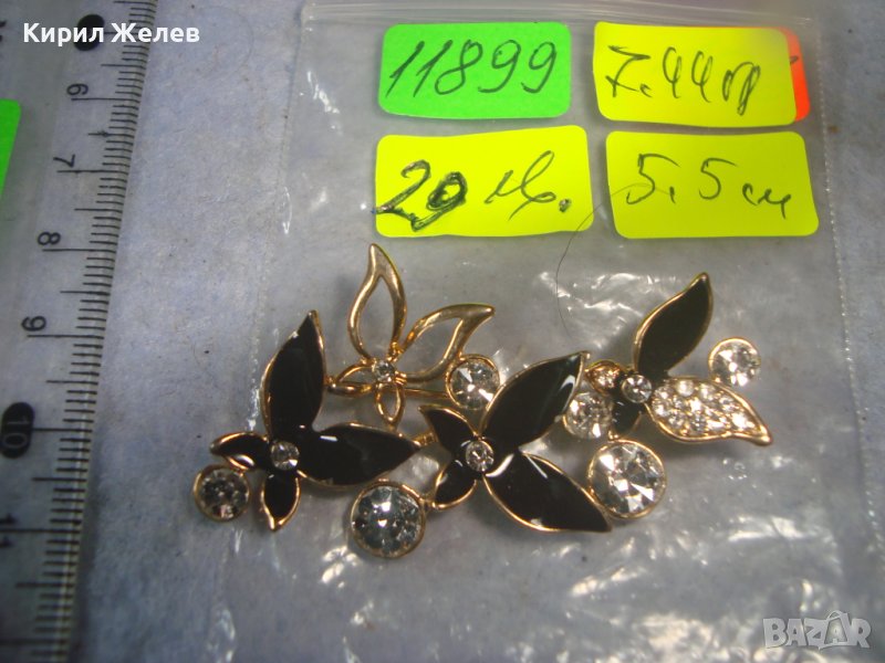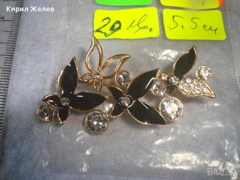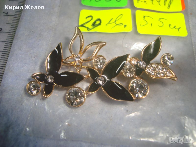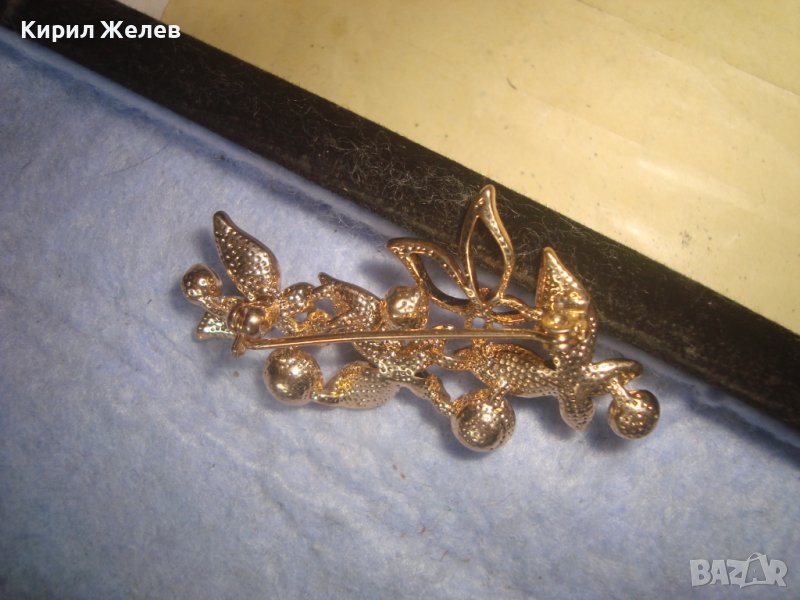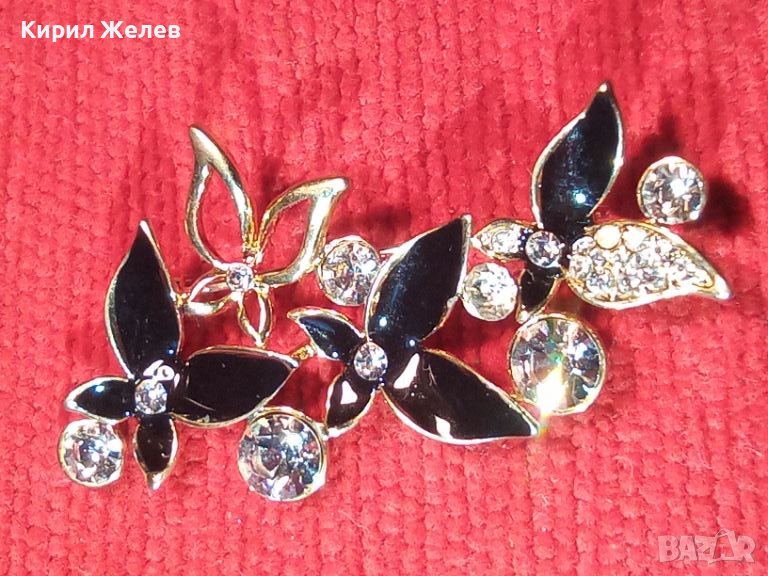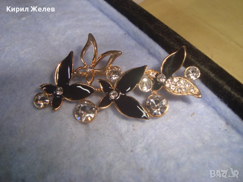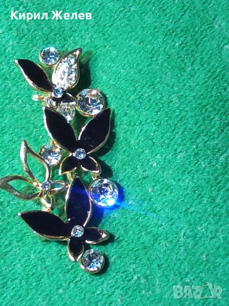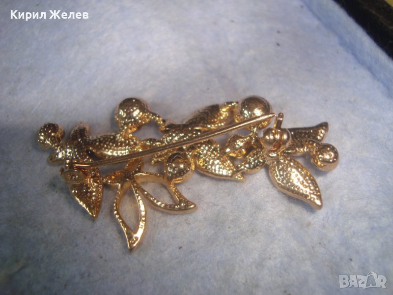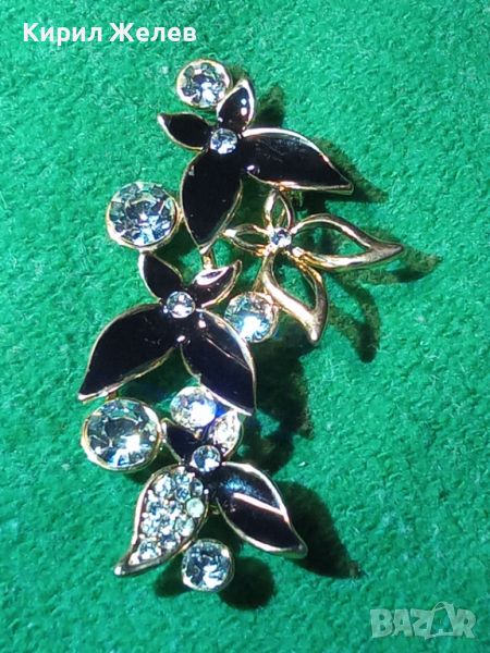 ПОЗЛАТЕНА ЕМАЙЛИРАНА ФЛОРАЛНА АЖУРНА КРИСТАЛНА АРТ БРОШКА 11899