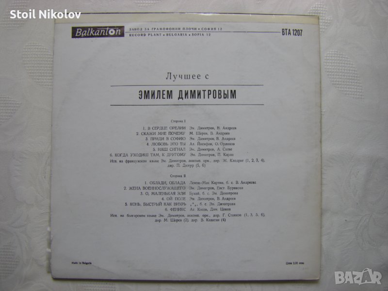 Грамофонна плоча - ВТА 1207 - Емил Димитров - Най-Хубавото