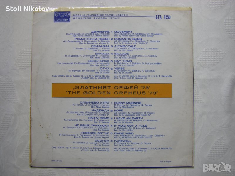 Грамофонна плоча - ВТА 1550 - Златният Орфей '73