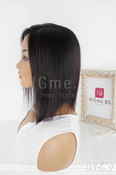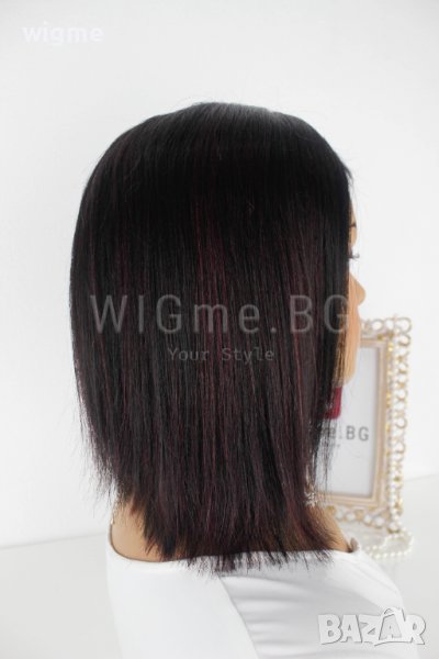 Черна перука от ЕСТЕСТВЕН косъм с тъмночервени кичури Селена