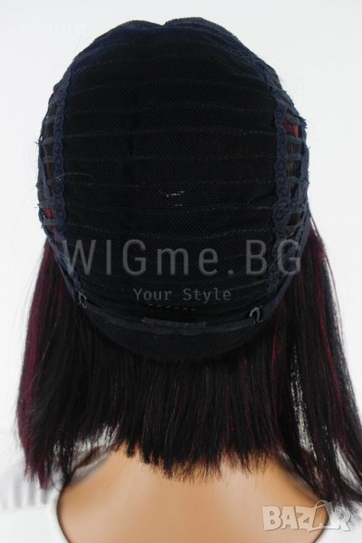 Средна дължина черна перука от естествен косъм с тъмночервени кичури Селена е с универсален размер – можете да регулирате широчината й с помощта на специални ластици, които задържат стабилно перуката върху главата Ви и предпазват от разместване.