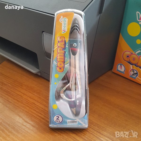Комплектът съдържа метален пергел и молив, който се поставя в него. Разположени в практична кутийка за съхранение, винаги под ръка за училище.