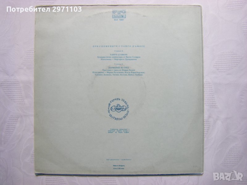 Грамофонна плоча - ВАА 10967 - При спомените с Танго Д'Аморе