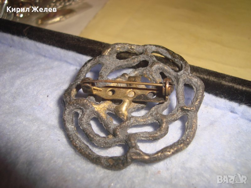 СТАРА АЖУРНА ФЛОРАЛНА ВИНТИДЖ КРИСТАЛНА МЕТАЛНА БРОШКА 14371