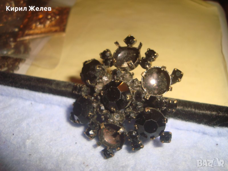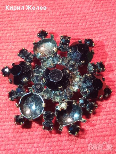 СТАРА ФЛОРАЛНА БРОНЗОВА ЛАКИРАНА КРИСТАЛНА РЕТРО АРТ БРОШКА 14484