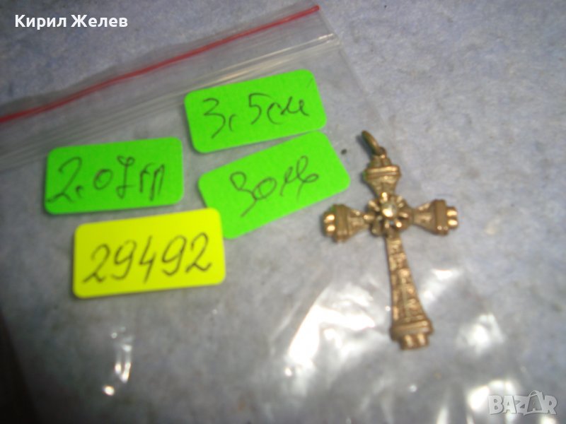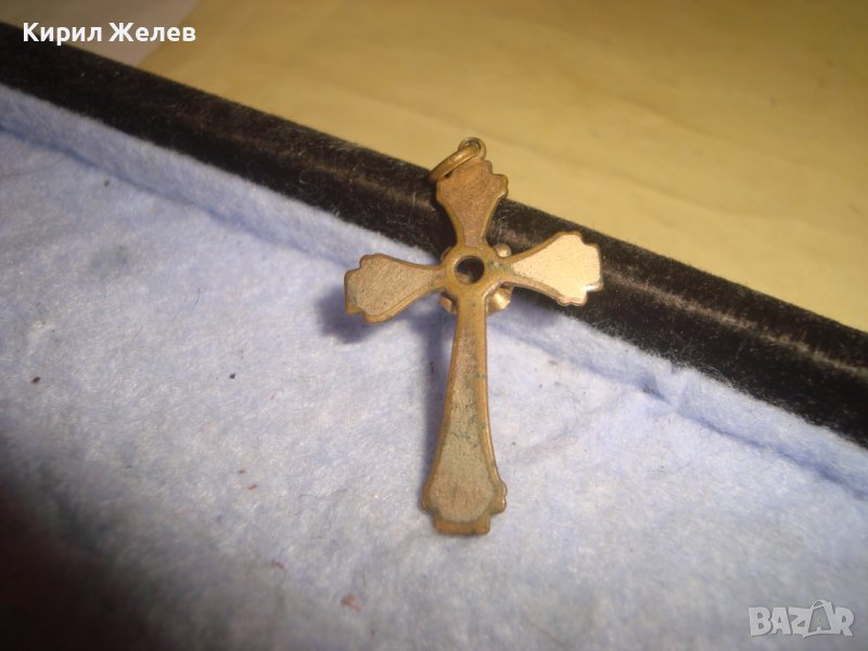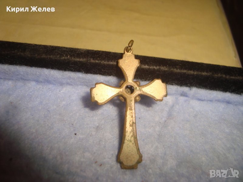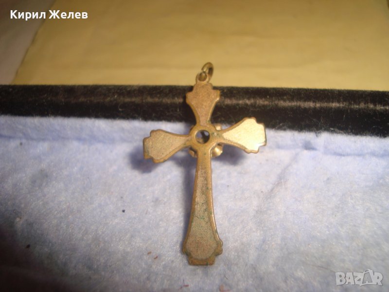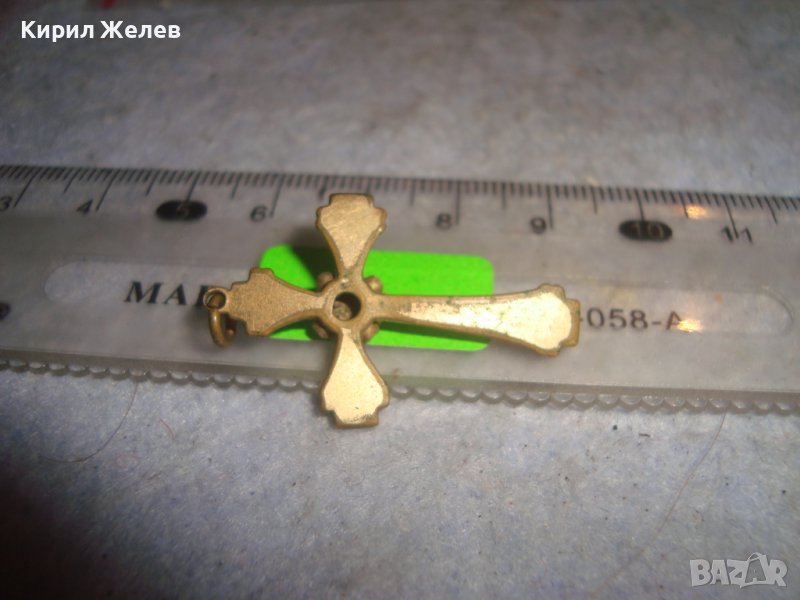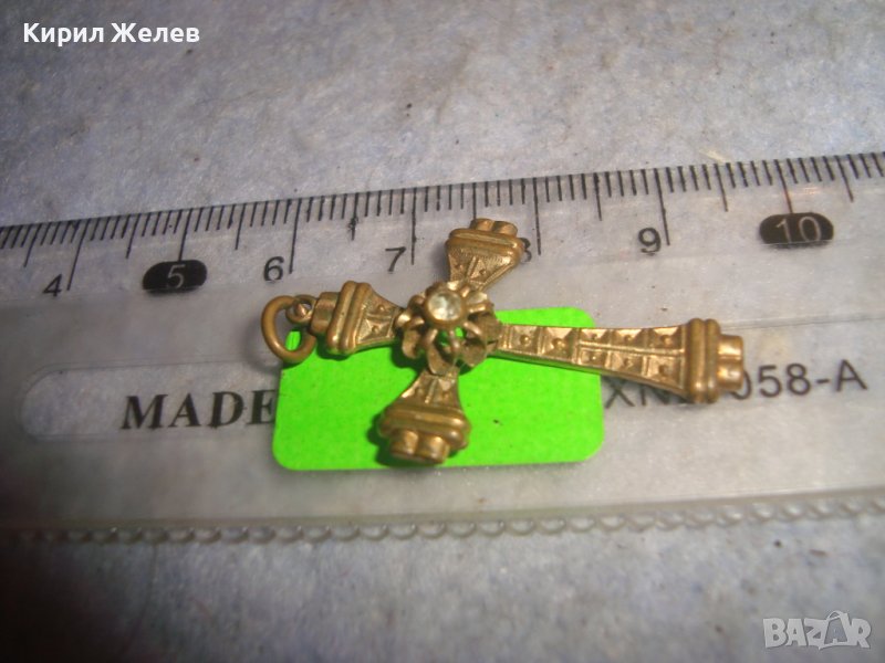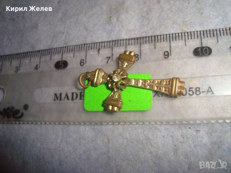СТАРИНЕН ОРНАМЕНТИРАН РЕТРО БРОНЗОВ НАГРЪДЕН КРЪСТ с ПОЗЛАТА и ФАСЕТИРАН ЦИРКОН КРИСТАЛ 29492