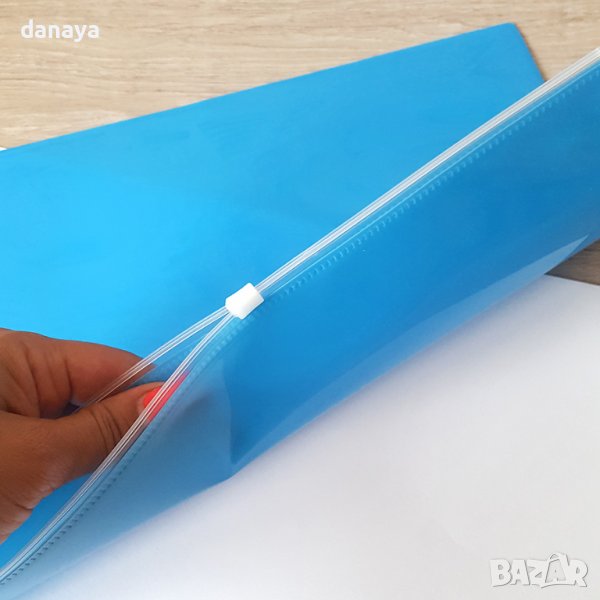 PVC папка за документи с цип за съхранение на ученически пособия, листи, тетрадки, учебници или документи. Идеална за училище или офиса. Формат А4. Папките се предлагат в розов и син цвят.