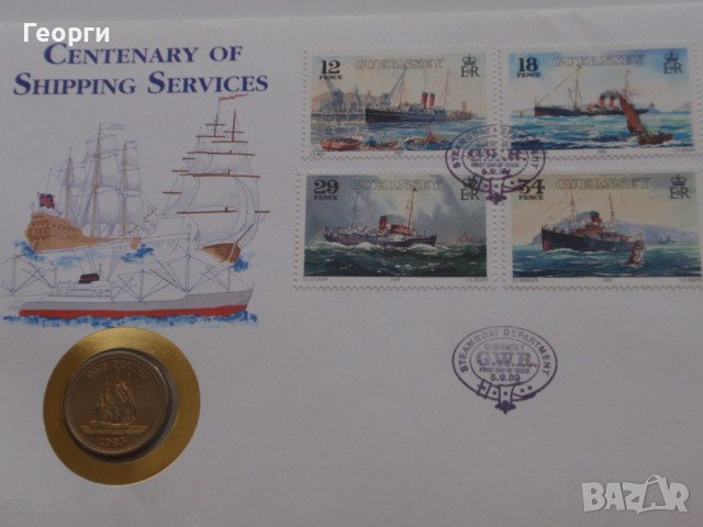 - рядък плик с монета и 4 марки, монетата е Гърнси 1 паунд 1983 - 29 лв.