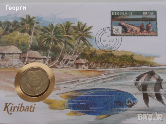- рядък плик с юбилейна монета и марка, монетата е Кирибати 2 долара 1989 - 10 г. от независимостта - 49 лв.