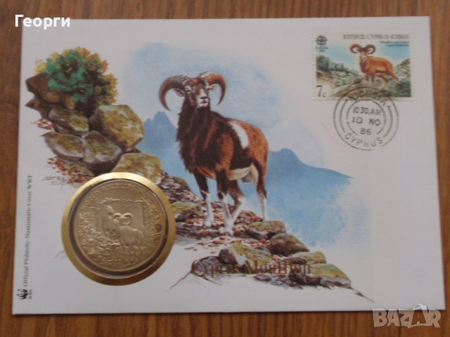 - рядък плик с юбилейна монета и марка, монетата е Кипър 1 паунд 1986 - Световен фонд за дивата природа - 49 лв.