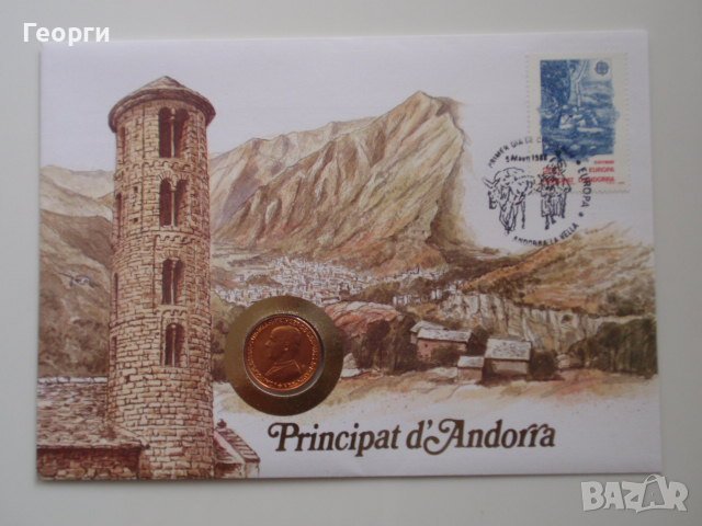 - рядък плик с монета и марка, монетата е Андора 25 сантима 1986 - 29 лв.