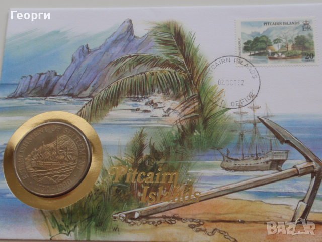 - рядък плик с юбилейна монета и марка, монетата е Питкерн 1 долар 1990 - 200 г. от заселването на острова - 79 лв.