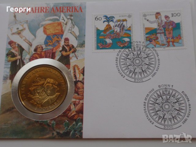 - рядък плик с юбилейна монета и марка, монетата е Кук 5 долара 1991 - 500 г. от откриването на Америка - 29 лв.