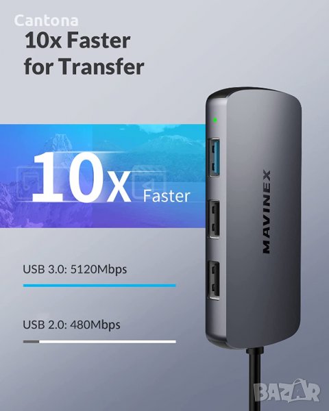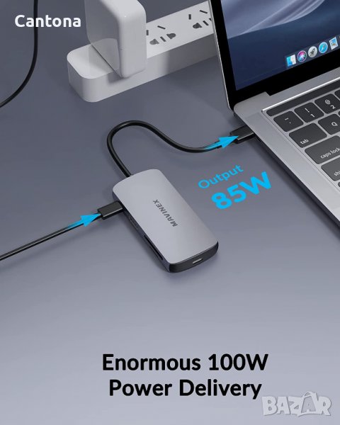 MAVINEX USB C хъб 8 в 1, 4K HDMI, USB C, USB 3.0, 2хUSB 2.0, SD/Micro SD четец на карти, 100 W USB