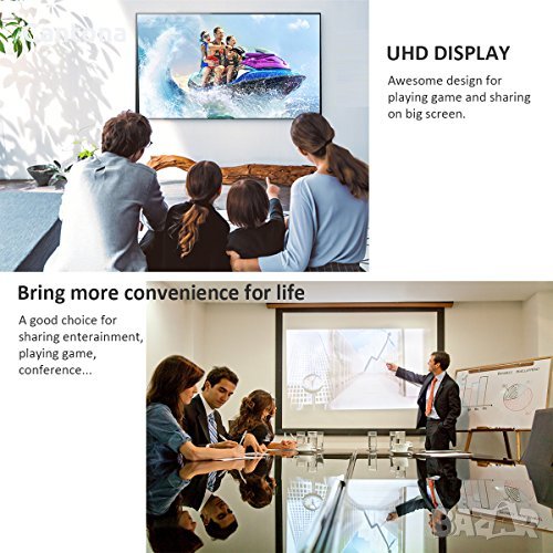 Поддържа разделителна способност на видео до 4K 3840*2160p при зашеметяващи 60 кадъра в секунда опресняване.Монитор и проектор без замъгляване или забавяне. Висока производителност: Поддържа разделителна способност на видео до 4K 3840*2160p при зашеметяващите 60 кадъра в секунда опресняване.Монитор и проектор без замъгляване или забавяне.Обратно съвместим с 1080p и 720p.
