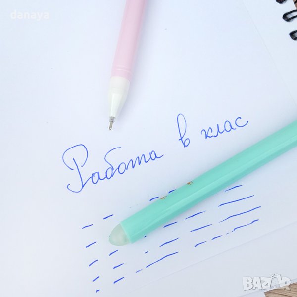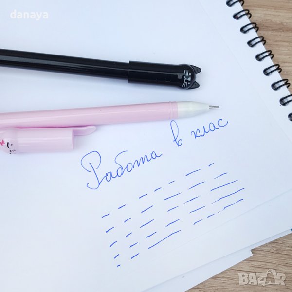 Изтриваем химикал, пишещ със синьо мастило. Изтрива се много лесно и бързо и не оставя следи. Особено подходящ за деца от началните класове. Капачката е с форма на весело котенце. Предлага се в красиви нежни цветове.