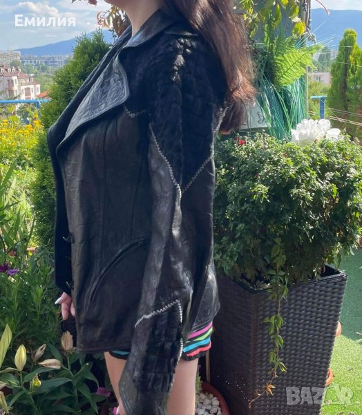 Луксозно кожено яке. 95лв. Съчетание между лицева кожа и къс косъм. Размер L. Черно. Ново! За София възможност за лично предаване. Забележка: липсва копче.