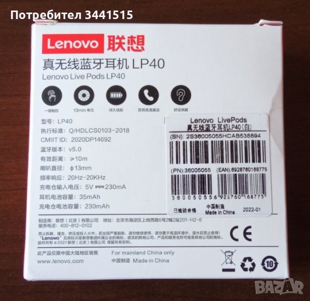 Слушалки Lenovo Live Pods LP40 TWS True Wireless Stereo 5.0 Bluetooth Headset хендсфри , снимка 1 - Слушалки, hands-free - 37807481 Слушалки Lenovo Live Pods LP40 TWS True Wireless Stereo 5.0 Bluetooth Headset хендсфри , снимка 2 - Слушалки, hands-free - 37807481 Слушалки Lenovo Live Pods LP40 TWS True Wireless Stereo 5.0 Bluetooth Headset хендсфри , снимка 3 - Слушалки, hands-free - 37807481 Слушалки Lenovo Live Pods LP40 TWS True Wireless Stereo 5.0 Bluetooth Headset хендсфри , снимка 4 - Слушалки, hands-free - 37807481 1/4