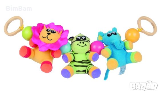 Занимателна плюшена дрънкаща играчка за количка / кошара с халки - сафари / CANPOL babies
