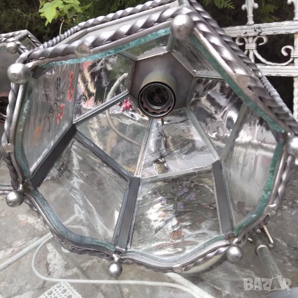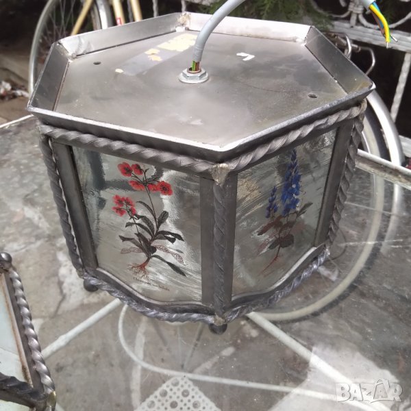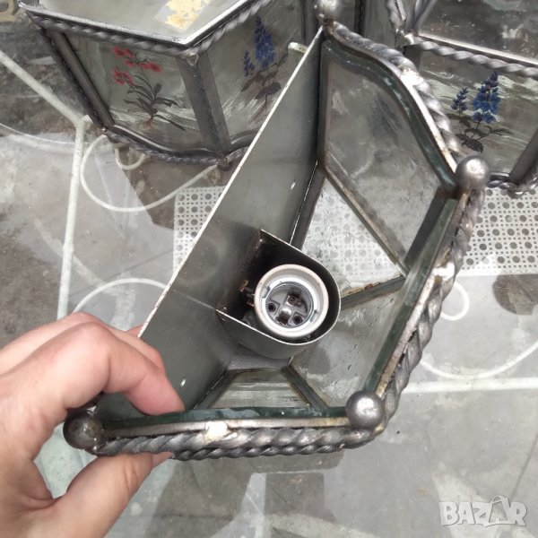Лот от 3 великолепни лампи желязо рисувано стъкло разпродажба
