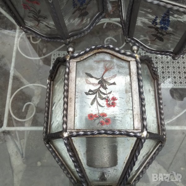 Изцяло ръчно изработени от масивно желязо ,грапави стъкла ръчно изрисувани с цветя .