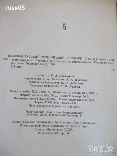 Книга "Немецко-русский технический словарь-Л.Барон"-728 стр. → Обява 37812046