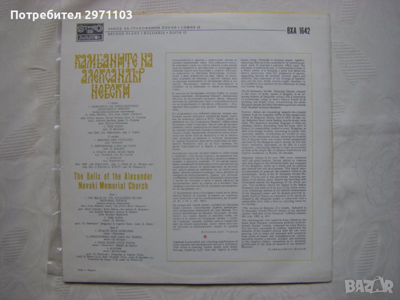 Грамофонна плоча - ВХА 1642 - Камбаните на Александър Невски. Литературно-музикална композиция