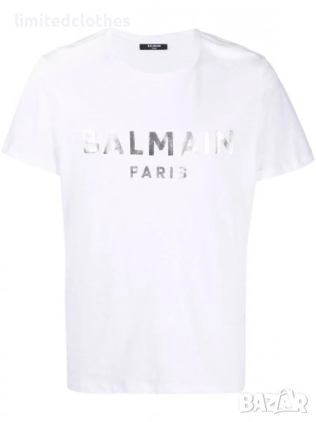 BALMAIN SILVER METALLIC LOGO PRINT Мъжка Тениска