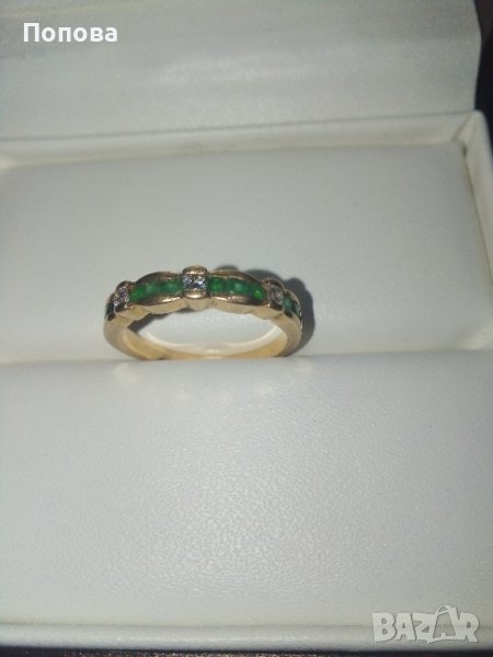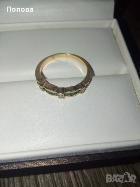 Златен 18 к. пръстен с диаманти и изумруди → Обява 37814464