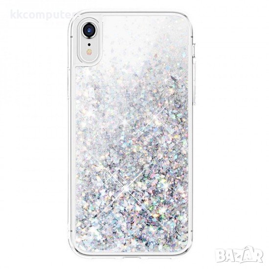 Силиконов кейс MBX Liquid с течност и брокат, За iPhone 11 (6.1), Сребрист