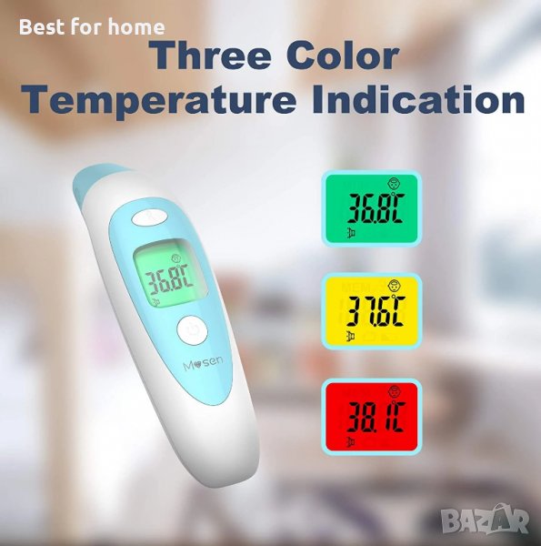 【4 В 1 ИНФРАЧЕРВЕН ТЕРМОМЕТЪР】 Съгласно инфрачервената технология, термометърът Mosen може да измерва температурата на ухото и челото. В същото време можем да го използваме за измерване на температурата на обект (мляко) и стая.