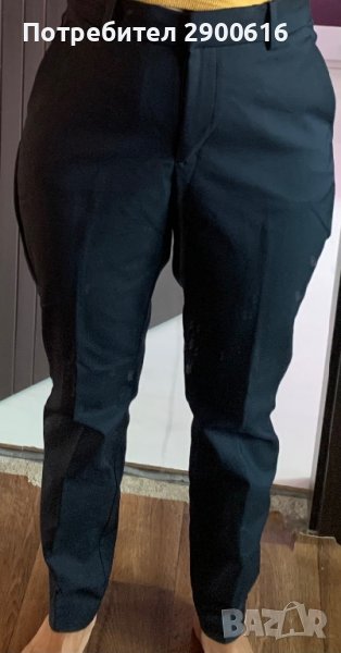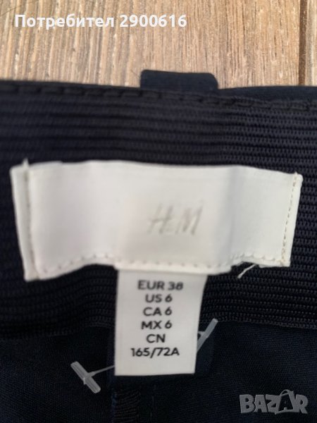Нов дамски панталон закупен от H&M размер 38. Цвят тъмно син. Пантарона стой много елегантно с италиански джобове отпред. Ширина на колана в закопчано положение е 38 см. Дължина на панталона 96 см. Продавам го защото ми е голям.