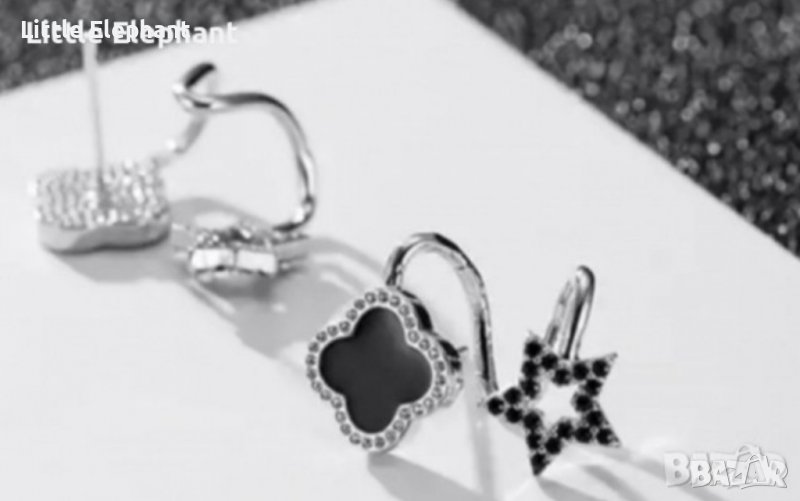 Обеци клип,бранд със звезди и кристали,black/нови → Обява 37818061