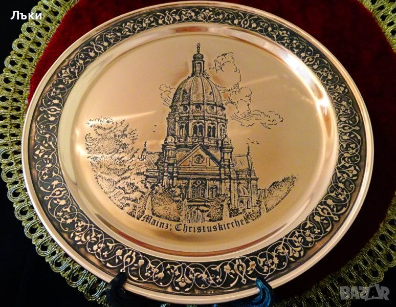 пано,плато,поднос,майсторска ръчна изработка с литография на църква в Майнц.По