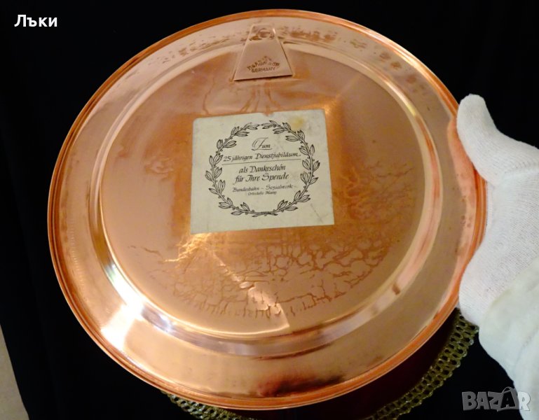 края декорирана с красиви орнаменти.Има маркировка и запазен етикет.Диаметър 23