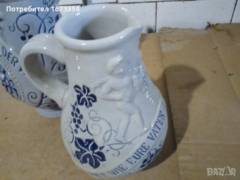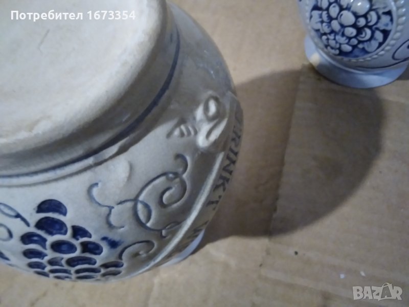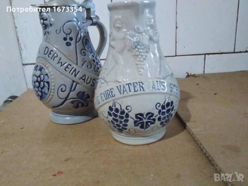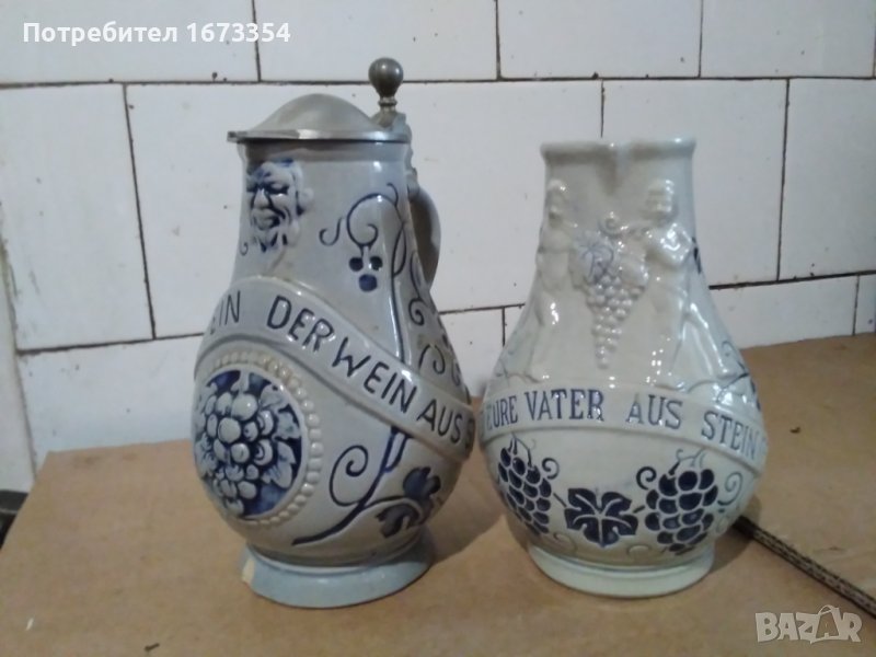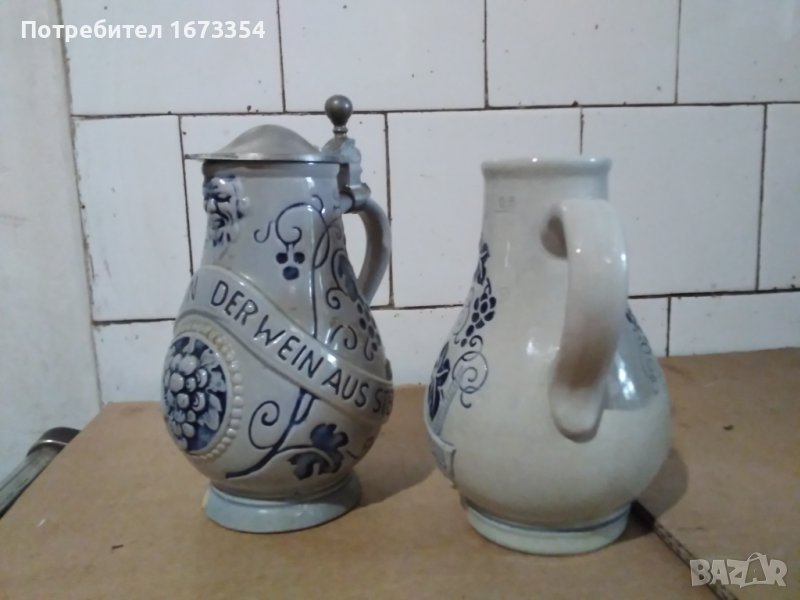 Продавам две Немски канички (халби) комплект от една серия по тъмната каничка е в другата ми обява самостоятелно ту са двете комплект тъй като си я намерих сестричето и Тази е без забележки с височина 17см Цената е за двете комплект 70,00лв
