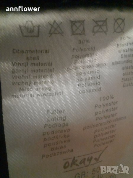 Долнището е ново но няма етикет. Размер 50. Ширина на ластика едностранно измерен без да разтягам 48см разтяга се до 57см за талия от 96см до 114см. Ширина на крачола 36см едностранно.