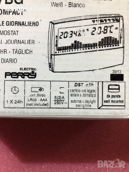 “UP & DOWN Compact” дневен дигитален програмируем термостат 3V серия - бял цвят