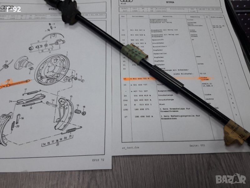 811609721H**NEU**VAG**AUDI**ЛЯВО ЖИЛО ЗА РЪЧНАТА СПИРАЧКА ***