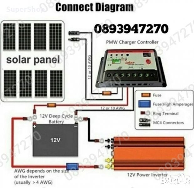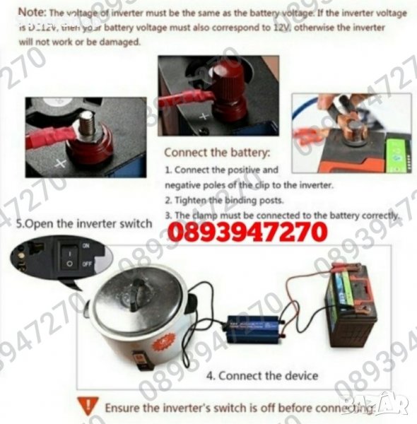 - Инвертор, - 2бр. Кабел, щипки- 1бр.