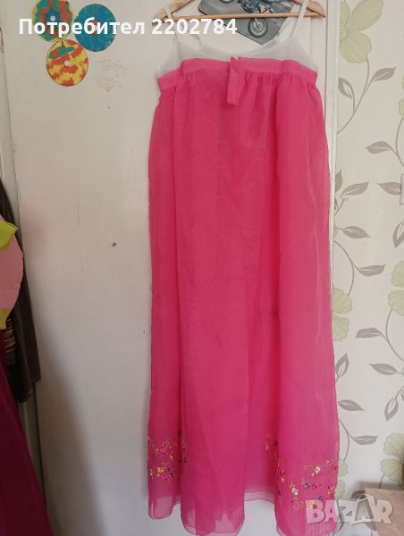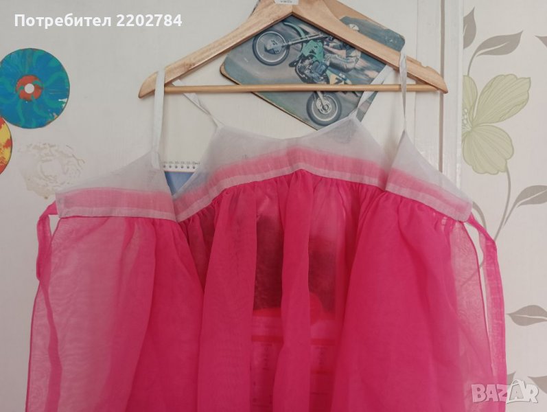 И горнище тип болеро до под мишниците.Пищни ръкави и отново отпред се завързва с широка пандела.Розов воал.Нова.
